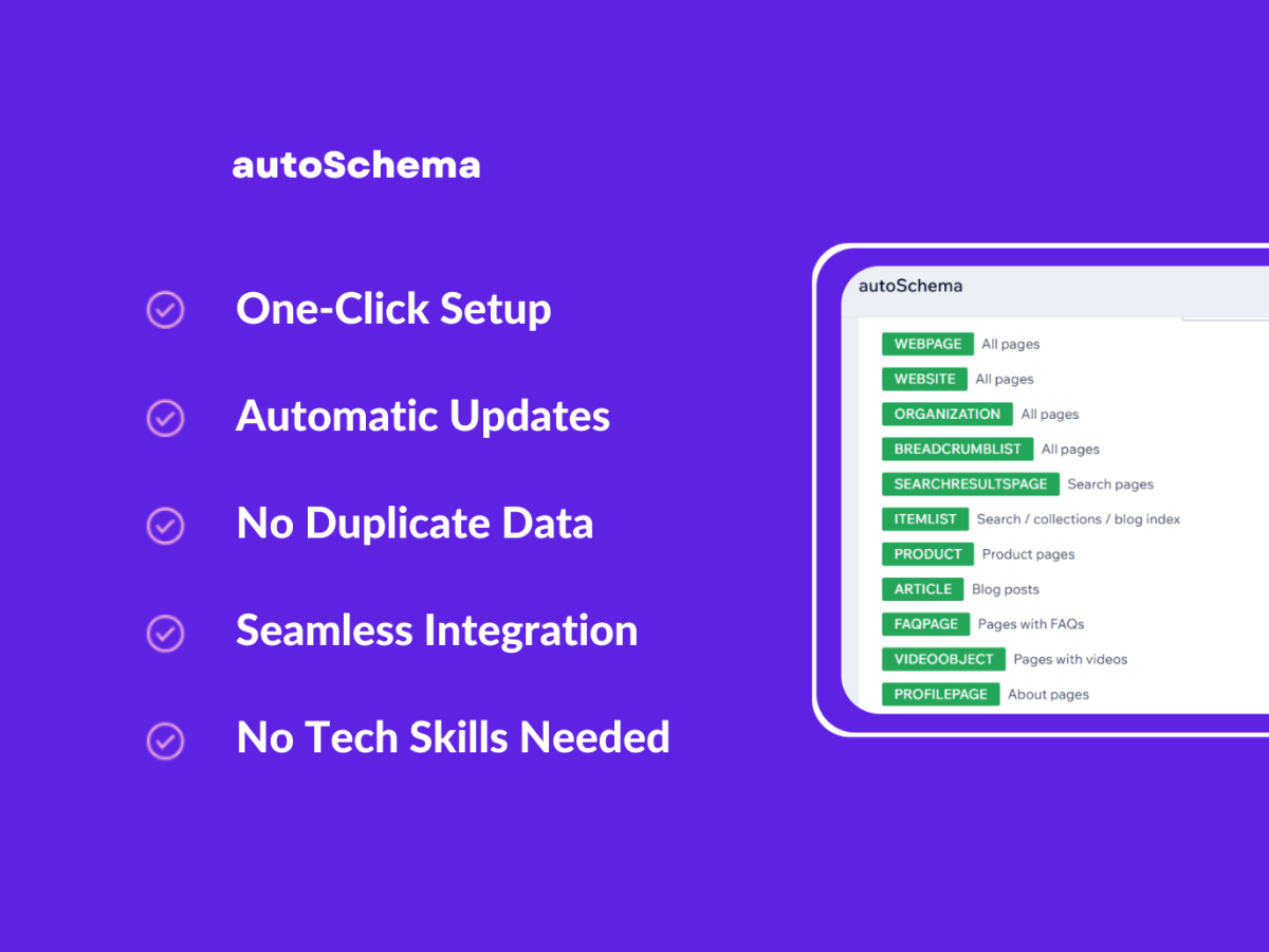 autoSchema makes it easy to add correct, Google-friendly structured data to your site, without any technical knowledge. Structured data helps search engines understand your content more clearly. It can improve how your pages appear in Google Search, enable rich results, and reduce the risk of errors caused by missing or incorrect markup. Manually adding and maintaining this data is time-consuming and easy to get wrong. autoSchema handles it for you automatically. Once installed, the app generates and maintains structured data for all relevant pages on your site. It updates itself as Google’s standards evolve, so you never have to worry about keeping things current. autoSchema also checks for existing markup and avoids creating duplicates or bad data that could confuse search engines. Everything is designed to be simple and safe. There’s no code to edit, no settings to fine-tune, and no impact on your site’s design or performance. Just install, activate, and let autoSchema take care of the rest.