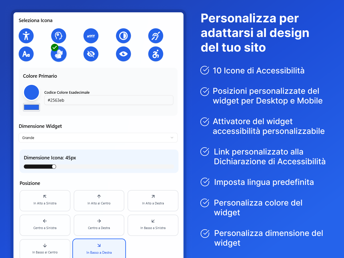 Sperimenta il widget di accessibilità leader progettato per migliorare facilmente ed efficacemente l’accessibilità del tuo sito web.