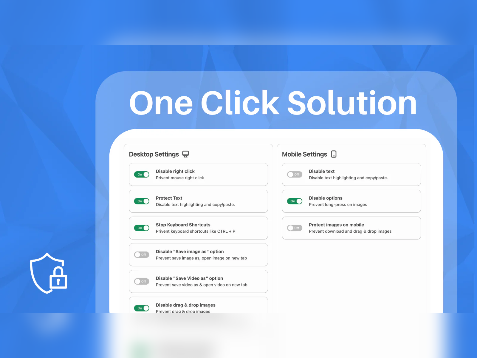 Site content is easy to copy, steal, or misuse, which can harm SEO because search engines reward original and unique content. This Site Security & Protection app helps protect text, images, product details, and valuable store data from being duplicated by disabling right-click, inspect, keyboard shortcuts, copy/paste, and common extraction tools. It works as a complete AntiCopy & Content Defender with NoSpy Security, Fraud Filters, VPN Blocker, IP Blocker, and Country Blocker to reduce access from bots, scrapers, spy tools, and suspicious traffic. Key Protection Features: • Sales Shield with Block Spy extensions like PPSPY, Koala, Spy tracker & ShopHunt • Disable Drag & Drop image to protect images and prevent image download by theft • Dakaas Protector App secure your site using Bot protection, IP, Country & NoSpy • Prevent unauthorized copying of site content • Disable Console and Developer Tools in Browser and Prevent PrintScreen Capture. Site Protector helps secure your site using bot protection, IP filtering, country blocking, and NoSpy protection layers. Designed for eCommerce site owners who want stronger protection against content theft and unwanted traffic.