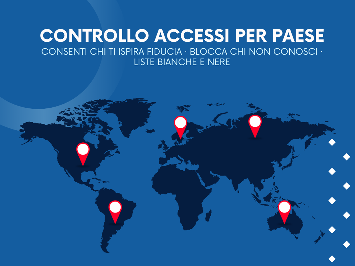 Protezione e blocco IP: limita l’accesso per paese o indirizzo IP.