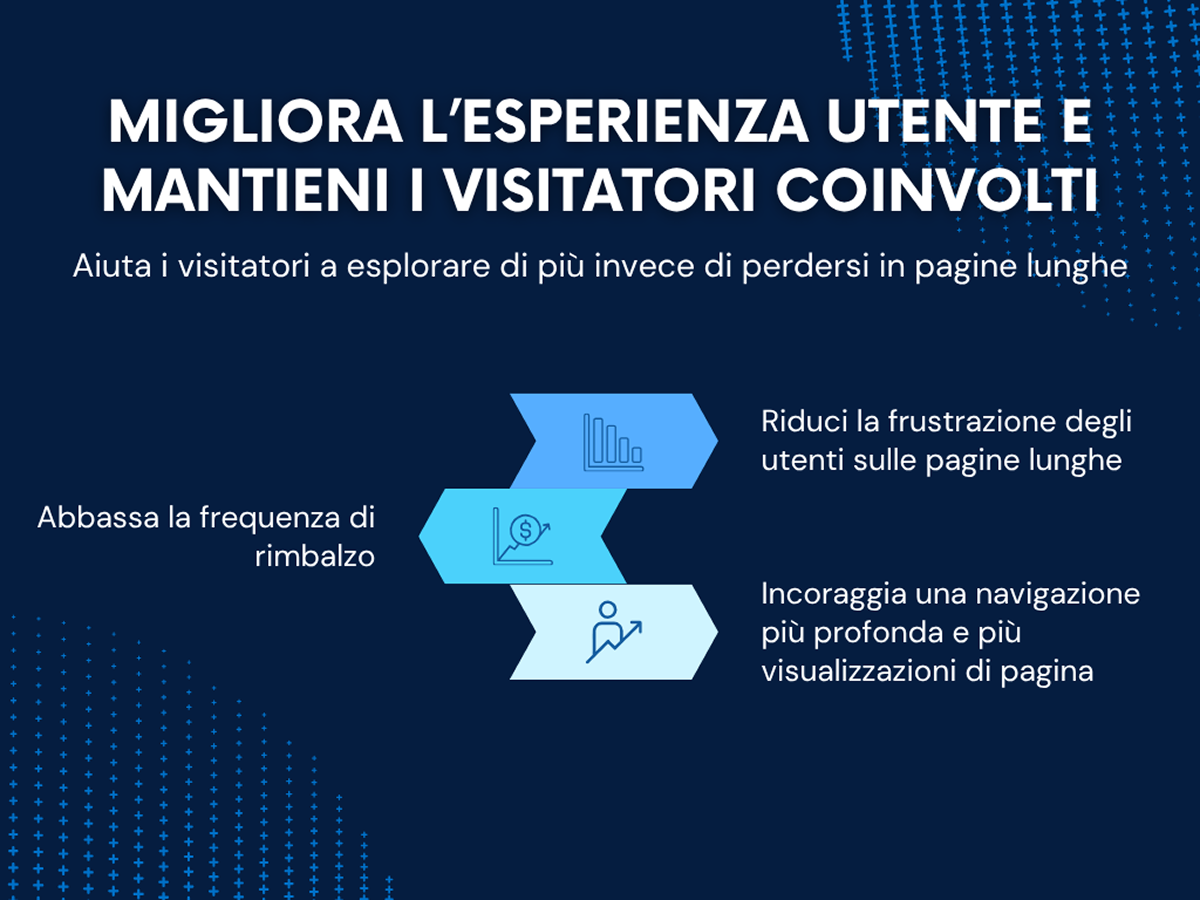 Migliora l’esperienza utente con un elegante pulsante “Torna su” che facilita la navigazione